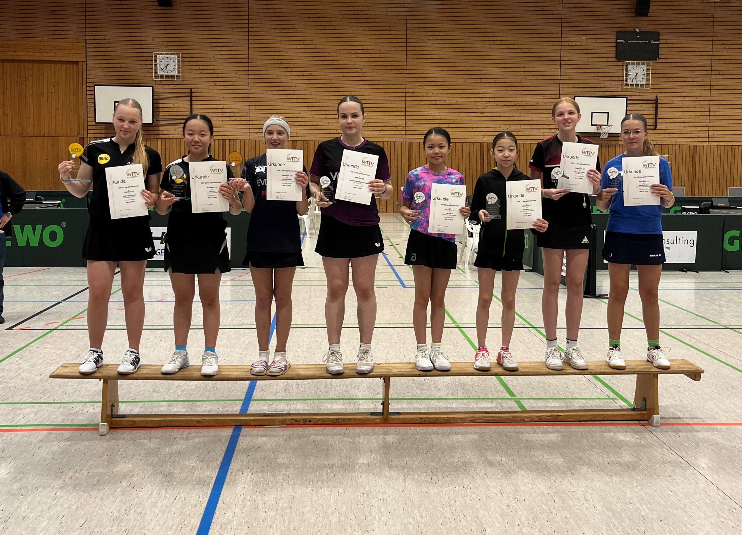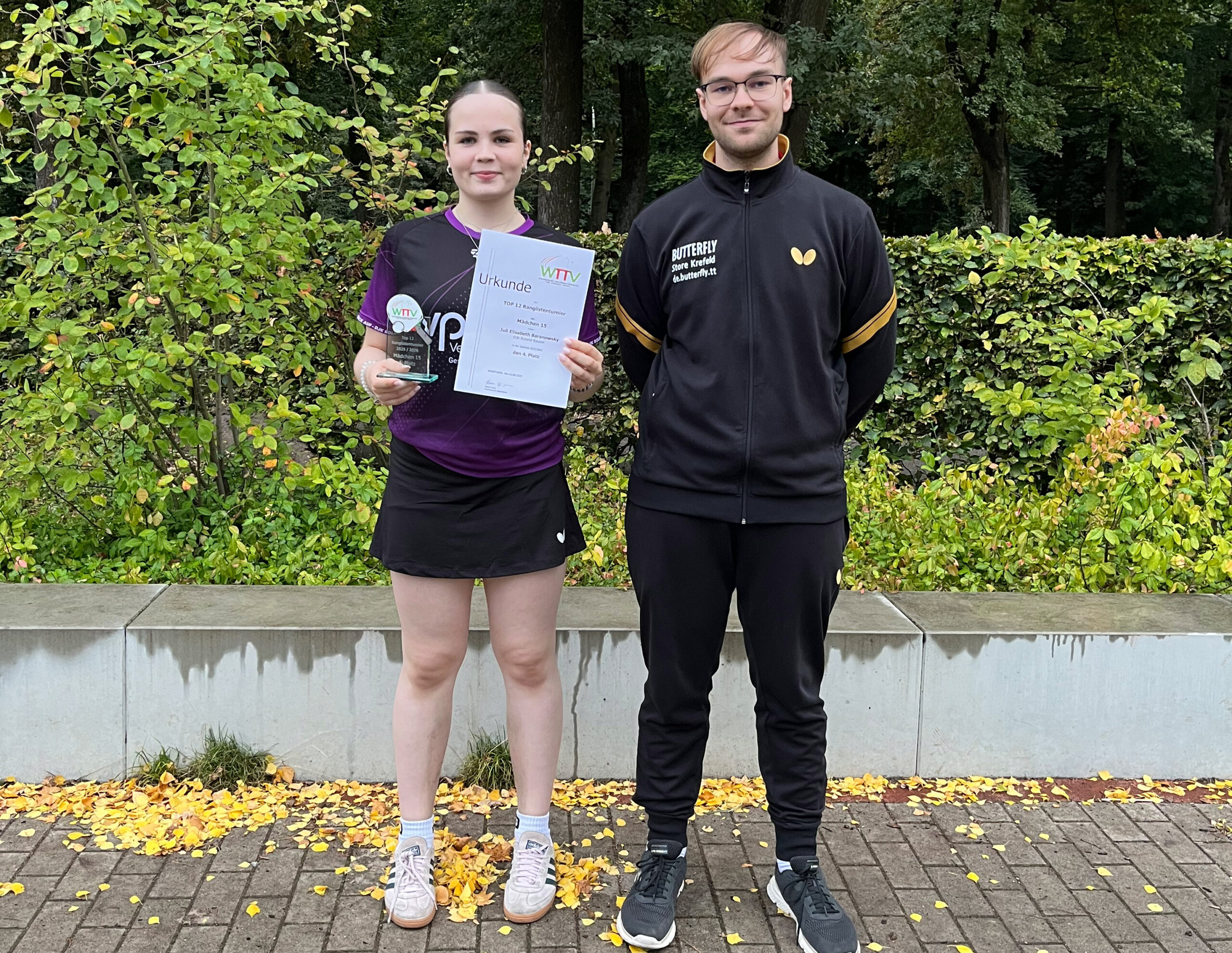 Mit einem starken Auftritt beim TOP12-Turnier der Mädchen 15 in Schloß Holte beendete Juli die WTTV-Ranglistenserie. Nach neun Spielen gegen die besten Spielerinnen aus NRW landete sie am Ende auf einem sehr guten vierten Platz. Zwei Wochen zuvor war Alex Tasarz beim TOP16-Turnier der Jungen 13 auf den 14. Platz gekommen.